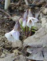斑入り葉のスミレは珍しいと、5株を手に入れルンルンしていたのは一年だけ・・・。 一株減り、二株減り、いつの間にか全滅の危機。 それが、小さな株を二つ見つけたのです。彼女の旅は15mほど・・・。 逃げ出した彼女達を探して、野迫川倶楽部中をウロウロしだした私です。 |
